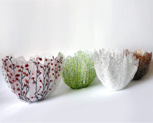 Insects and other strange creatures inspire my work. I transform a specimenâs decoration, shape or color into something of my own artistic expression. In this project, I play with the ambiguity of the word âARTâ. Art as in species or art as in artistic creation. Based on this wordplay, I explore the surprise in form and expression that arises in the glass after the objects have gone through their process. Wondrous shapes, almost like undiscovered species, are classified and arranged in their own habitat.