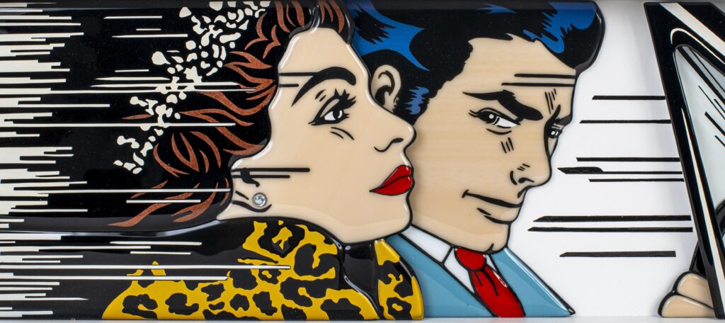 Following a visit to Scotland many years ago, Opal discovered traditional stained glass making and fell – quite accidentally – into the wonders of glass art which quickly drew her in and began her journey into the art world. Through testing her ideas against traditionalist views, she’s developed her skills into fusing techniques, designing intricate and unconventional art. Opal’s ever-evolving style is inspired by a wide range of sources, including comic, pop art, nature, photography, and art in its wider context. She uses techniques such as airbrushing, powder printing, freehand painting, and sgraffito, prior to kiln firing, incorporating other materials alongside glass to ensure her creations are truly unique.