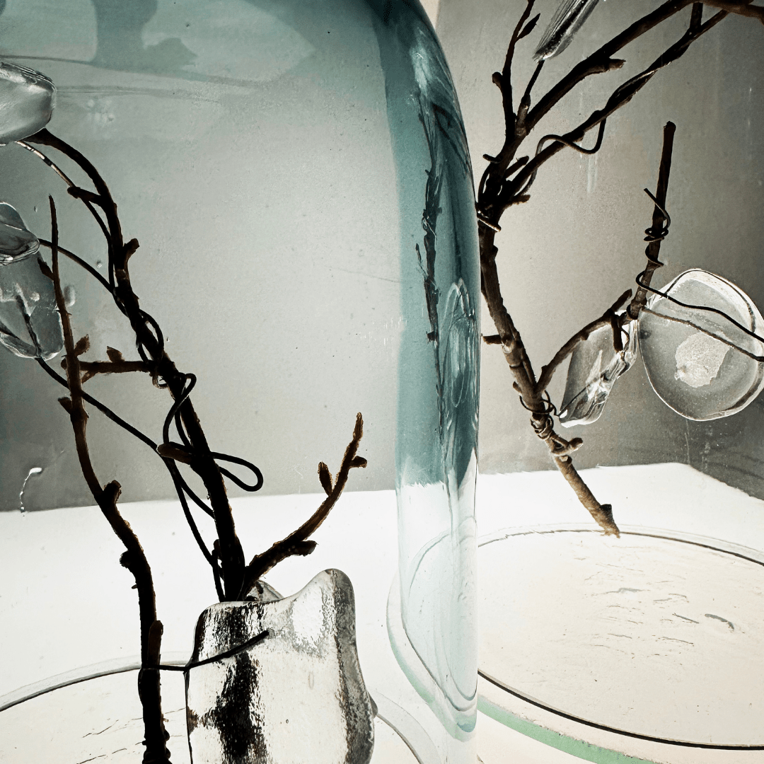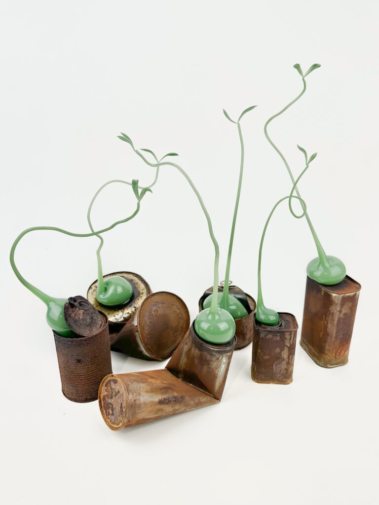 Humanity, developing in nature, has started to shape its environment with the desire to meet its physiological and spiritual needs in a changing order. This has disrupted the natural balance. The story begins with the planting of living glass in cans, and the imbalance can only regain balance with the integrity of contrast. Harmony is perhaps not so far away. The breath passes through this heated thin tube and shapes the glass. As long as the ends of the thin tubes remain open, the glass continues to live. It is as if the glass needs to breathe to live.