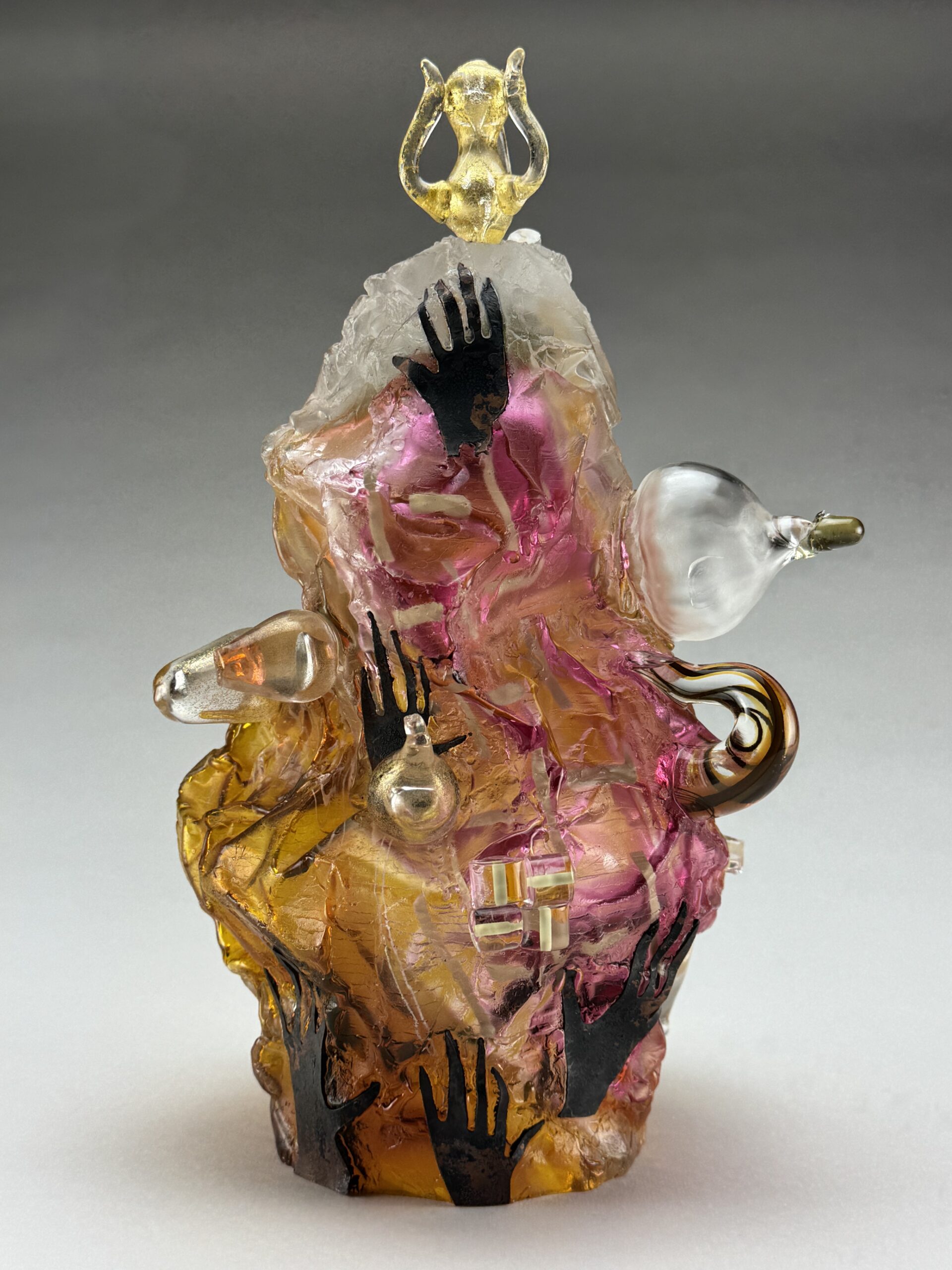 Narrae Kang delves into the intricate dynamics of personal experiences and domesticity, crafting her artistic journey with roots in the vibrant landscapes of Hawaii. Nurtured in the bustling port city of Busan and refined through her studies in Seoul, Kangâs creative spirit found expression in various forms. Armed with a Bachelorâs degree in Spatial Design and professional experience as an Architectural Lighting Designer, she developed a discerning eye for the interplay of form, space, and human experience. Driven by an insatiable thirst for a more tactile and immersive creative process, Kang embarked on a profound artistic odyssey, culminating in pursuing a Masterâs in Glass Art. Specializing in the unconventional medium of âbottle glass,â she pushed the boundaries of her craft, earning recognition as a finalist for the esteemed Stanislav Libensky Award.